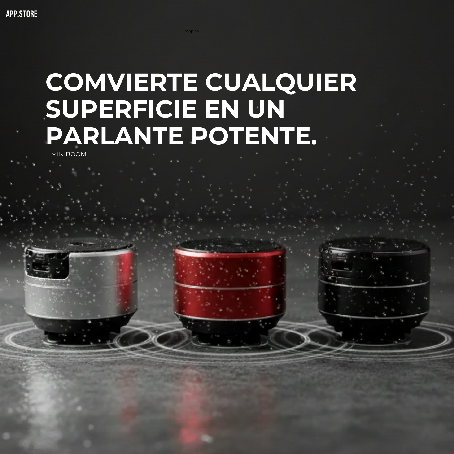 ¿Tu música suena débil en cualquier lugar? MiniBoom convierte cualquier superficie en un altavoz potente.
